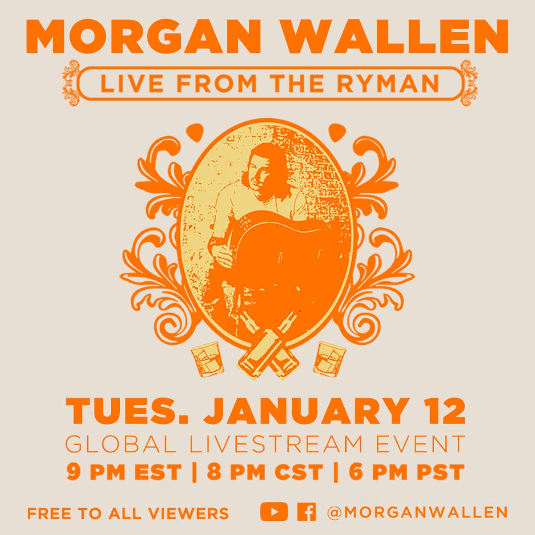 Morgan Wallen will also be doing a special Live At The Ryman show on January 12th that you can stream for free.